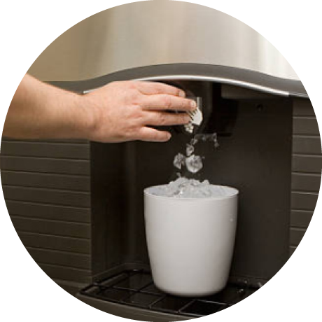 酒店A座二层(本地称为一层)设有一个自动饮料机,供应无酒精饮料和啤酒。请用客房中的白桶放置冰块。