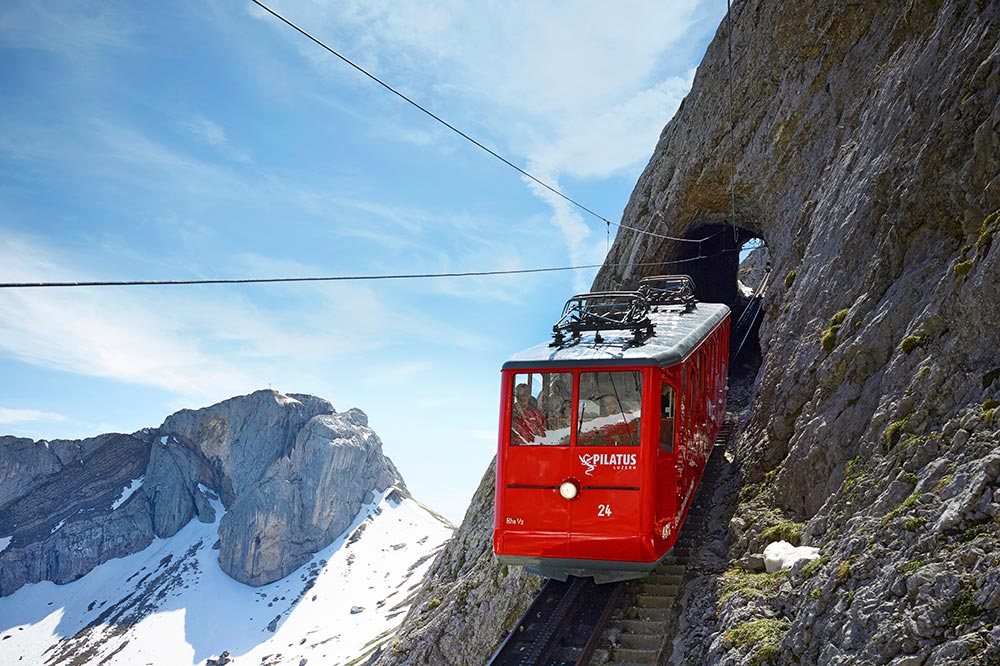 瑞士中部的山脉因旨在为游客提供美妙体验的破纪录工程壮举而闻名,包括世界上最陡的齿轮铁路(皮拉图斯山)、欧洲第一条山区铁路(瑞吉山)、世界上第一条双层敞篷铁路 空中索道(Mount Stanserhorn)和世界上最陡的缆索铁路(Stoos)。