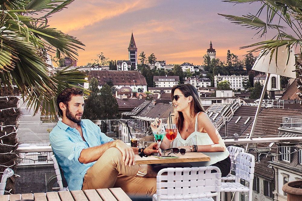 从这座酒吧的平台上,俯瞰卢塞恩的万家灯火,远眺雄伟秀丽的阿尔卑斯群山,尽情享受这难忘的一刻!